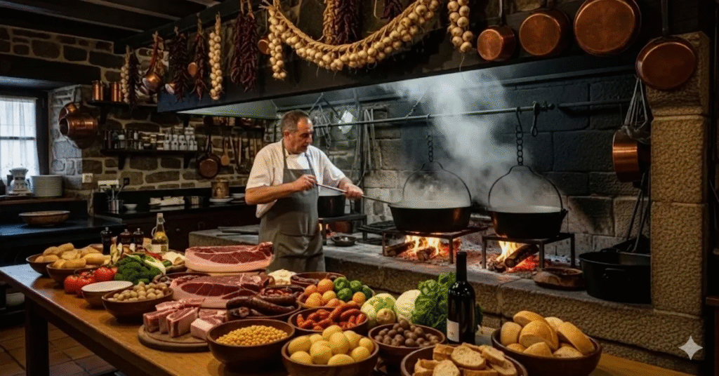 A great Cocido Gallego begins with high-quality ingredients. Traditional meats such as pork shoulder, chorizo, bacon, or beef should be flavorful and properly seasoned. Fresh potatoes, greens, and legumes add balance and texture. Inferior ingredients can make the dish heavy or bland.